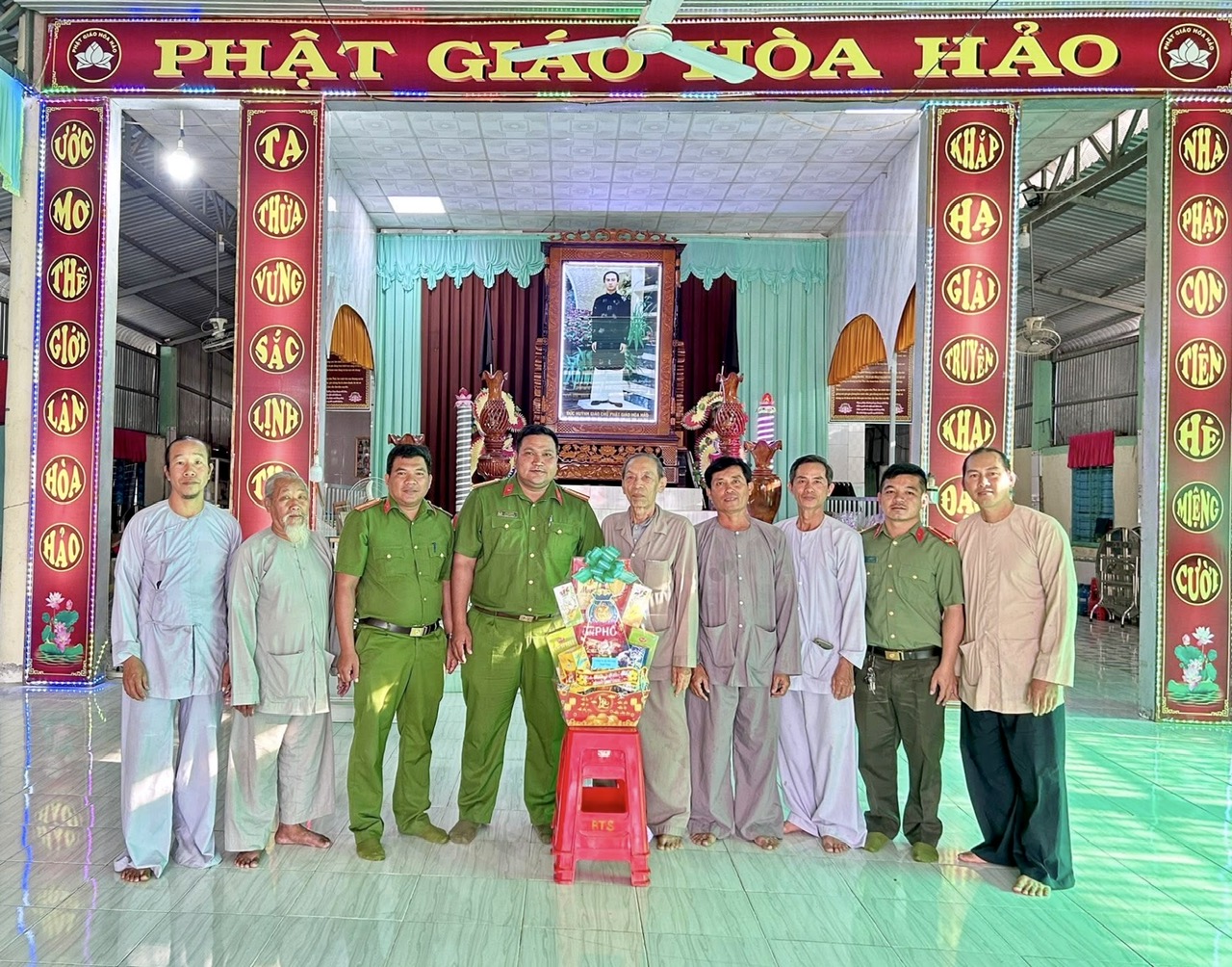 Công an xã Núi Cấm thăm, chúc mừng Ban Trị sự Phật giáo Hòa Hảo xã nhân kỷ niệm 106 năm Đại lễ Đản sinh Đức Huỳnh Giáo chủ