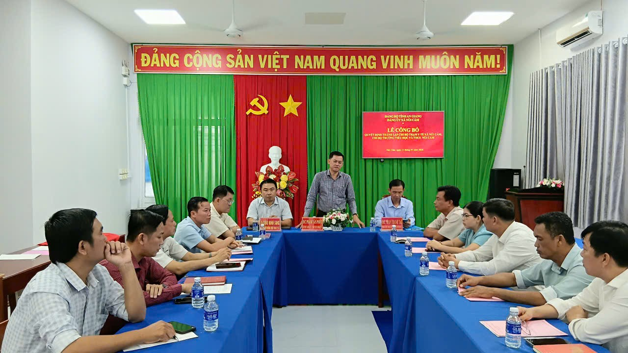 Chiều ngày 13/01/2026, Đảng ủy xã Núi Cấm tổ chức Lễ công bố quyết định thành lập Chi bộ Trạm y tế xã và Chi bộ Trường Tiểu học và THCS Núi Cấm. Đến dự có đồng chí Phạm Văn Phúc - Bí thư Đảng uỷ, Chủ tịch HĐND xã; đồng chí Đỗ Minh Sang - Phó Bí thư Thường trực Đảng uỷ xã; đồng chí Phan Thanh Tài – Phó Bí thư Đảng ủy – Chủ tịch UBND xã Núi Cấm; lãnh đạo Ban xây dựng Đảng, Ủy ban kiểm tra Đảng ủy, cùng toàn thể các đồng chí cán bộ, đảng viên, nhân viên Trạm Y tế xã; trường Tiểu học và THCS Núi Cấm.