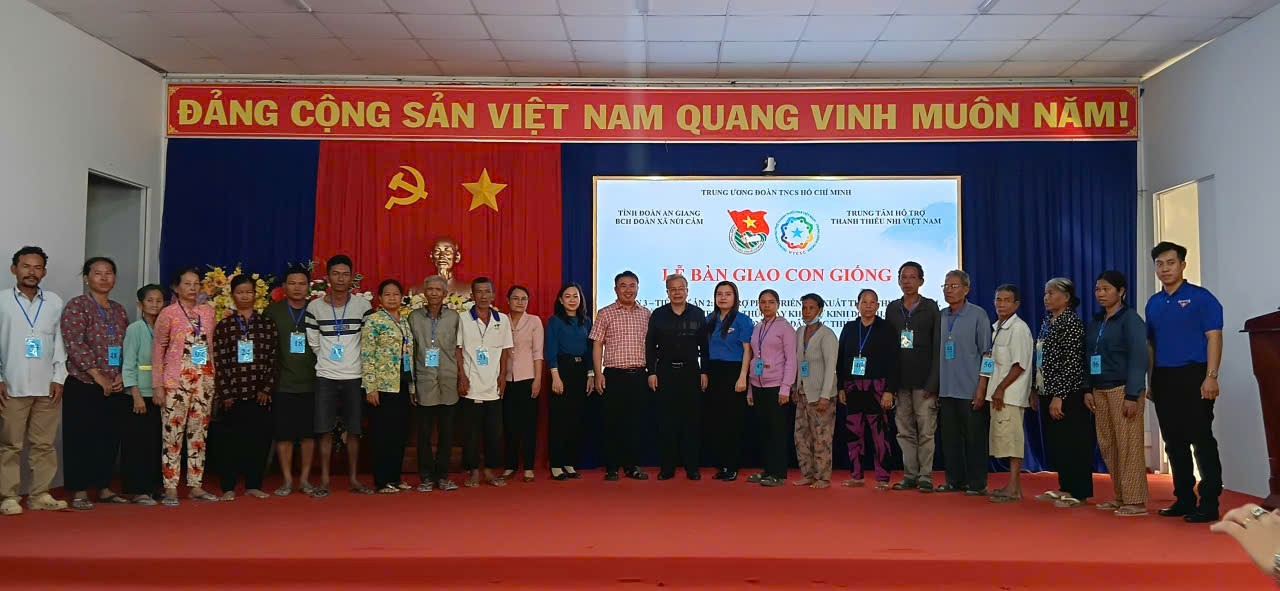 Sáng ngày 18/12, Tỉnh đoàn An Giang phối hợp với Trung tâm Hỗ trợ thanh thiếu nhi Việt Nam và UBND xã Núi Cấm tổ chức tập huấn chuyển giao khoa học kỹ thuật và trao mô hình chăn nuôi bò giống sinh sản cho các hộ dân tại xã Núi Cấm (tỉnh An Giang). Mô hình này được thực hiện theo Tiểu dự án 2 - Dự án 3 Chương trình mục tiêu quốc gia phát triển kinh tế - xã hội vủng đồng bào dân tộc thiểu số và miền núi giai đoạn 2021-2030.