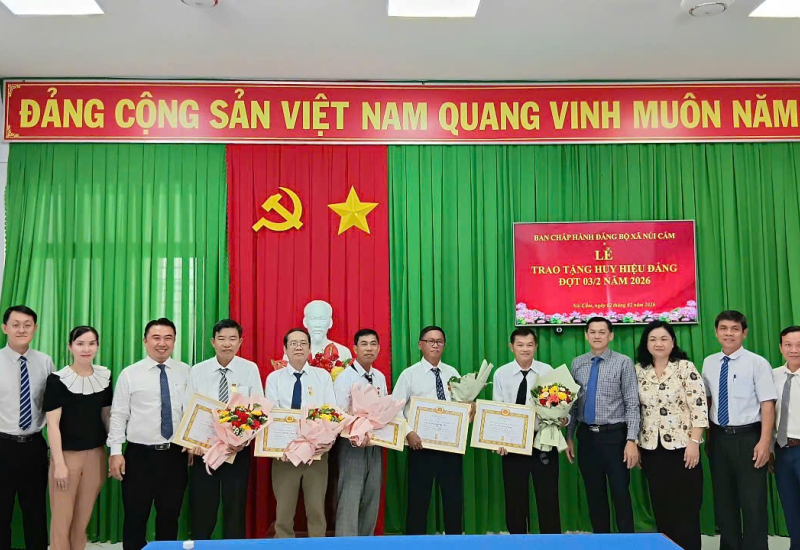 Nhân kỷ niệm 96 năm Ngày thành lập Đảng Cộng sản Việt Nam (03/02/1930 – 03/02/2026), sáng ngày 02/02/2026, Đảng ủy xã Núi Cấm long trọng tổ chức Lễ trao tặng Huy hiệu Đảng đợt 03/02/2026 cho các đảng viên cao niên tuổi Đảng trên địa bàn xã.